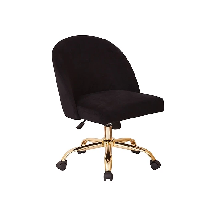 Glam home office. Get the classic look of an accent chair combined with the function of an office chair all in one with this stylish task chair. Luxurious velvet brings a cozy vibe, making your home office a place you’ll want to spend all day in. Bring a touch of class to your home office with the Layton office chair.