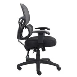 Provide a more comfortable seating experience for your staff with this Boss Perfect Posture office chair. Contoured, padded cushions offer softness plus support for all-day comfort, while the durable tweed upholstery stands up to frequent wear and tear. A five-star base and rolling casters make moving this chair from room to room simple. Adjust the seat height up or down to match your desk setup and use the swivel seat to transition from your computer to your filing cabinet or credenza. With its simple silhouette and neutral black color, this Boss Perfect Posture office chair brings understated style to your workplace.