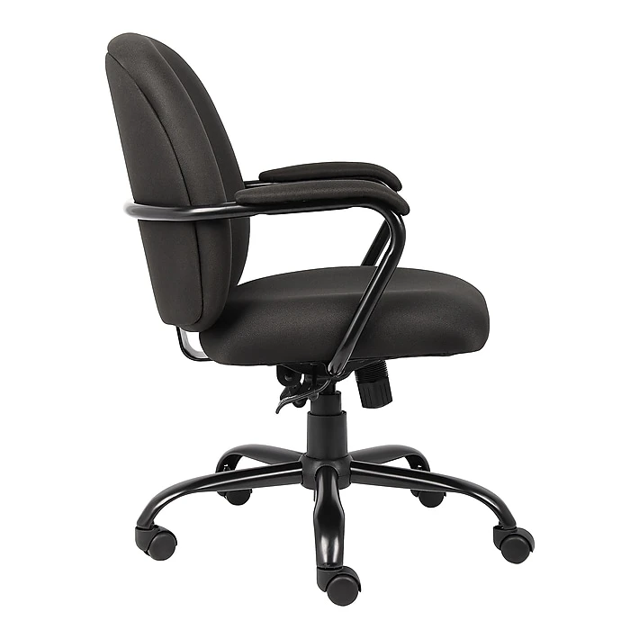 Create a simple yet modern look in your office or cubicle with this Boss heavy-duty task chair. The wider seat design and 300-pound weight capacity make this chair a smart option for people of virtually all sizes and builds, while the adjustable seat height options let you customize the setup to suit your personal preferences. Thick seat and back padding provides added support for busy days spent at your desk, giving you all-over comfort. This Boss heavy-duty task chair boasts a sturdy five-star base to remain stable on a variety of flooring surfaces, and the casters let you roll freely from one side of your office to the other.