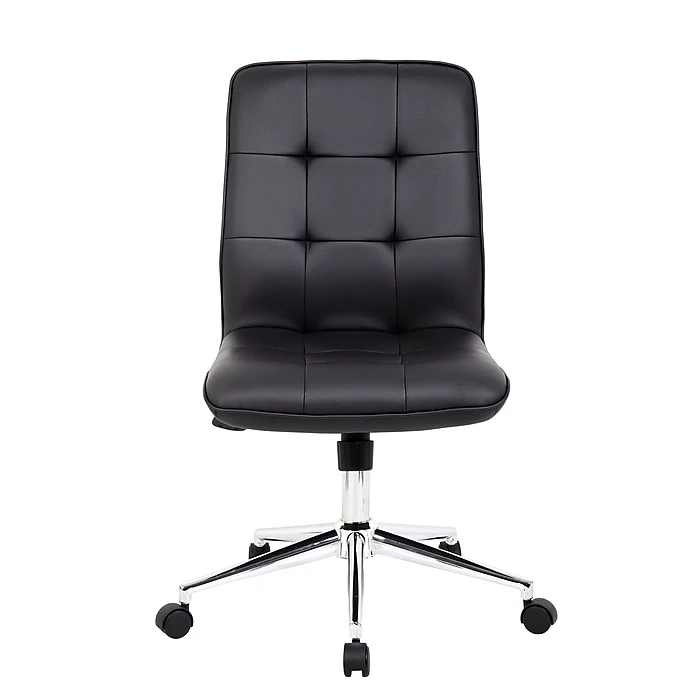 Enjoy a comfortable, stylish seating experience with this Boss Millennial modern office chair. The CaressoftPlus upholstery brings a luxurious feel to this chair, while the button-tufted accents add a handsome finishing touch. The polished five-star base and rolling casters make it easy to wheel your way from your desk to a nearby file cabinet or printer stand. This desk chair features soft, contoured padding for added cushion and support, so you can put in long hours without muscle stress and strain. With pneumatic seat height adjustment, spring tilt and upright tilt lock, this Boss Millennial modern office chair lets you customize the setup to meet your personal preferences.