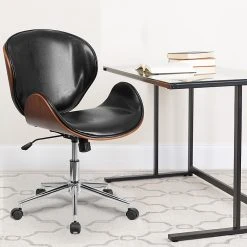 Flash Furniture Mid-Back Walnut Wood Swivel Conference Chair In White Leather (SDSDM22405WH)