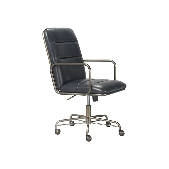 This comfortable office chair combines smart features with a mid-century modern design for a look that raises the style IQ in any work space. Created with sleek design in mind, the desk chair features rich executive-level bonded leather upholstery and a tube metal frame for a modern industrial look. It’s as comfortable as it is cool with ergonomic cushions and a padded high back for added support. With its adjustable height, recline, smooth rolling casters, and 360-degree spin, this Finch Franklin computer chair gives you the versatility you need to multitask.
