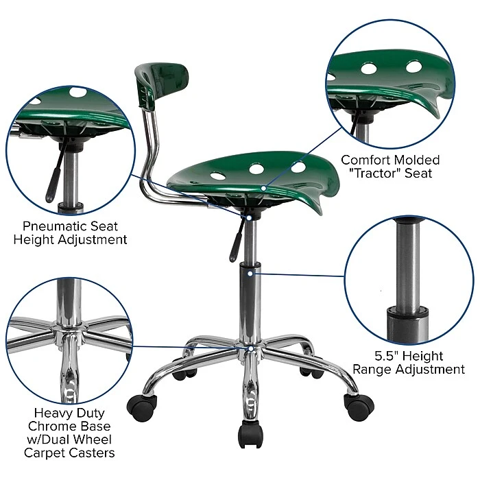 - Tractor-style task chair for use with computer desk at home