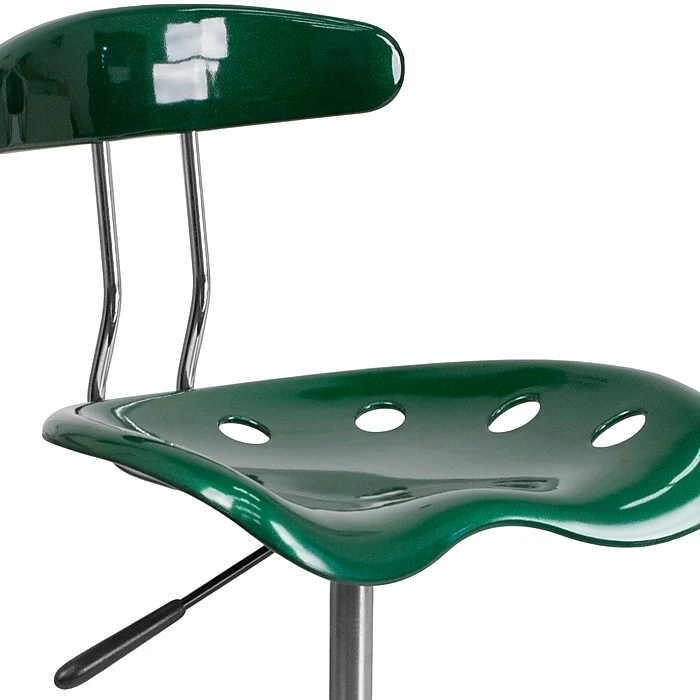 The Flash Furniture Task Chair is equipped with a pneumatic height adjustment system that helps raise or lower the height of the chair to meet your requirements. Constructed from high density polymer, it ensures maximum sturdiness and durability. The chrome frame, cylinder extension and base not only add to overall look of this green task chair, but also offers support and stability. Moving this armless chair is easy and convenient, thanks to the dual wheel carpet casters on its base.