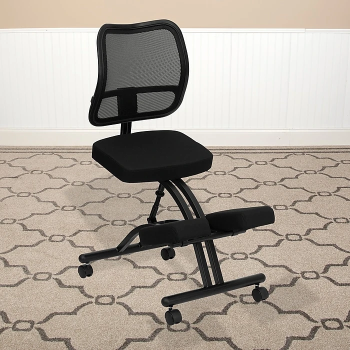 - The contemporary Flash Furniture kneeling chair effectively supports different work positions and allows freedom of movement