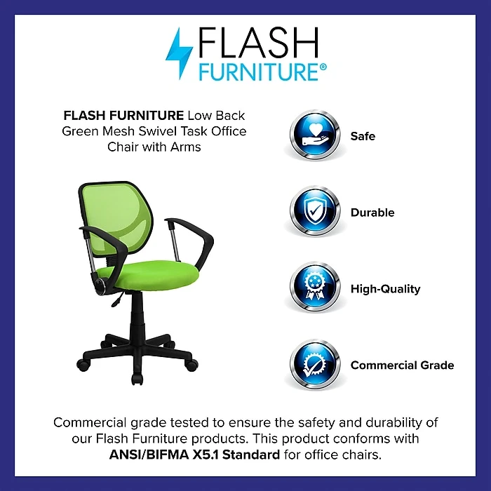 - The Flash Furniture green mid-back mesh task chair is compliant with all ANSI and BIFMA safety standards