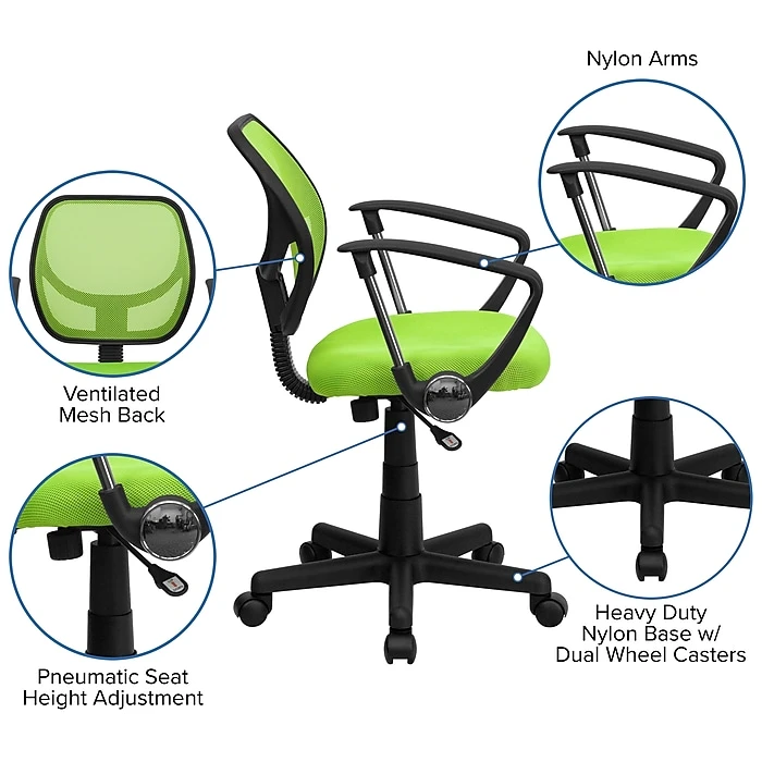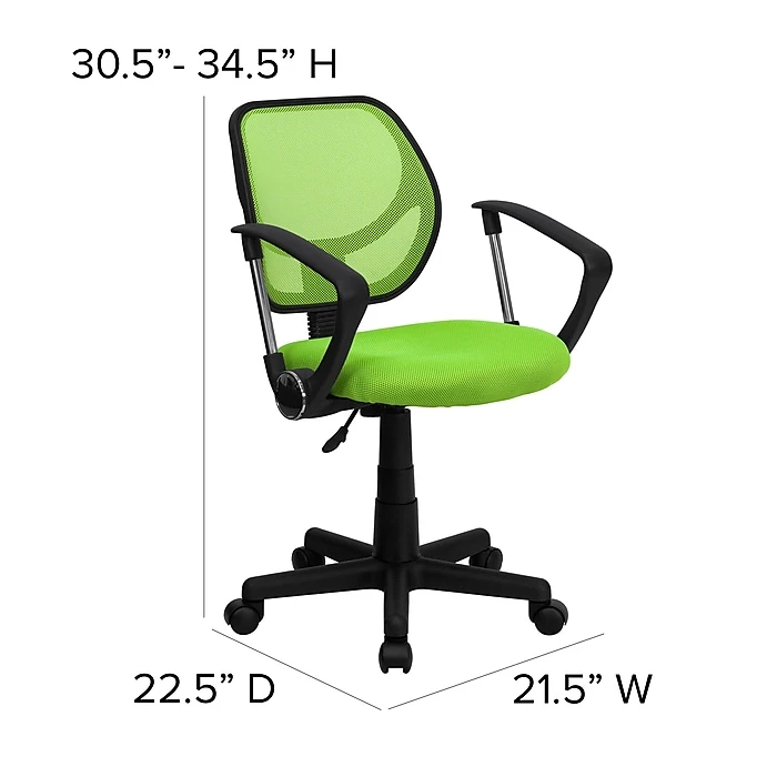 This stylish green Flash Furniture office task chair is ideal for professional use. Breathable nylon mesh upholstery keeps workers cool throughout long workdays, and a pneumatic seat-height control adjusts the chair’s elevation to encourage proper posture. This Flash Furniture green mid-back mesh task chair includes a 2-inch-thick cushioned mesh-upholstered seat and breathable mesh backrest for the highest possible level of comfort.