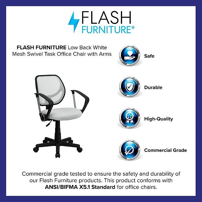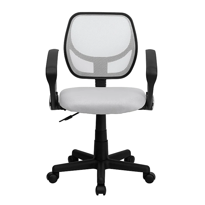 The Flash Furniture Contemporary Task Chair in an elegant white shade is perfect for any setup and looks neat and professional. For extra softness and cushioning, this mid-back task chair has high-quality mesh upholstery. Its pneumatic seat height adjustment mechanism feature regulates the chair height and provides a balanced support to lower back. The chair is designed with breathable mesh back and 2-inch thick padded mesh seat for maximum comfort. For safety purpose, this chair uses CA117 fire retardant foam cushions.
