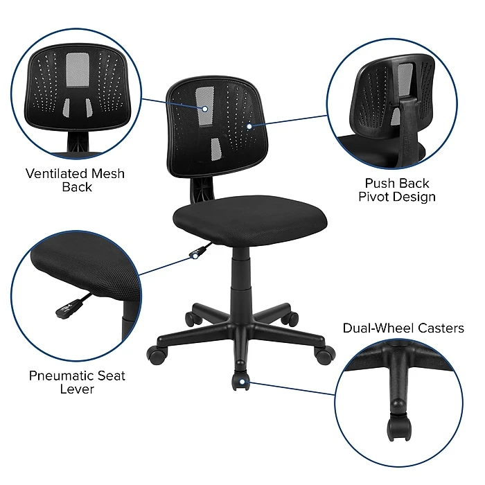 Tackle the workday with any challenge that comes your way on this snazzy desk chair. The cooling designer back features mesh material for exceptional airflow combined with gentle curved lumbar support. The Fundamental task chair will make an impressive footprint in your office with its cutting-edge structure. The innovate back pivots backward while leaning back for a comfortable resting period. Adjust your office desk chair with the pneumatic adjustment lever that controls the height of your seat. Effectively switch between tasks with 360° of swivel motion. Providing exceptional value for modern office, the Fundamental seating will afford you the opportunity to purchase seating for students and small businesses.