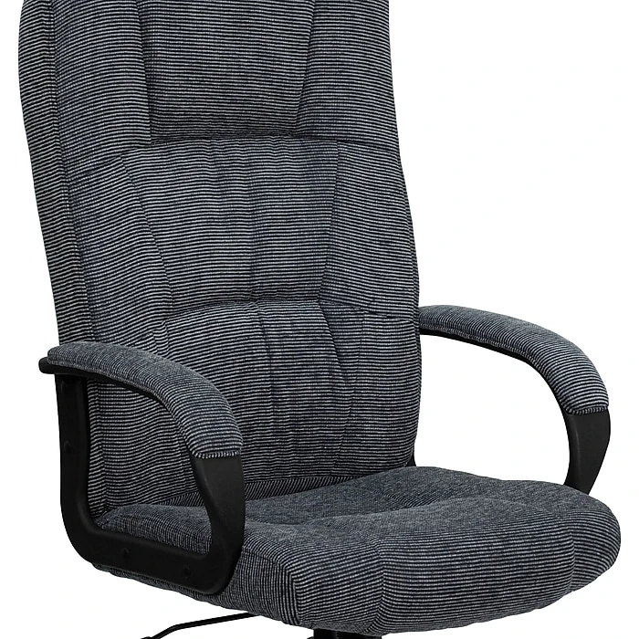 Modern LooksThe Flash Furniture fabric executive chair features a contrasting gray upholstery with a textured pattern that’s easy to maintain, and its deep tone is ideal for many different professional environments. Stitched detai ls on the back highlight support areas and create a contemporary look.ComfortThis Flash Furniture high-back executive chair is tall enough to support the entire back as well as the neck and head, and padding over the a rmrests offer a soft place to relax the forearms. This gray ergonomic executive chair swivels and tilts back to give users optimal mobility, and a powerful pneumatic mechanism raises or lowers the seat to the height that’s ideal for each worker.