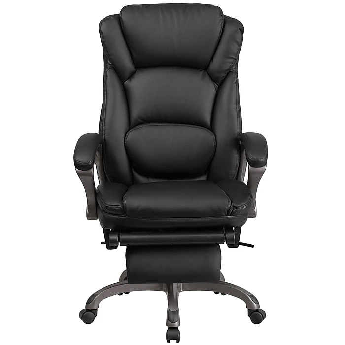 Get in a relaxed position with this Reclining Executive Office Chair by Flash Furniture! Chair reclines with a lever and has a slide-out footrest.