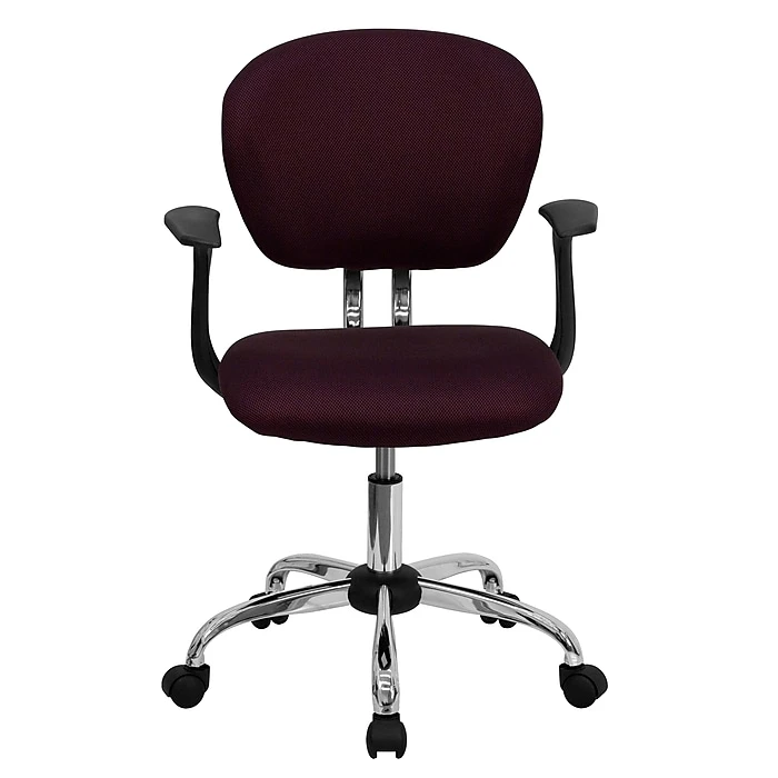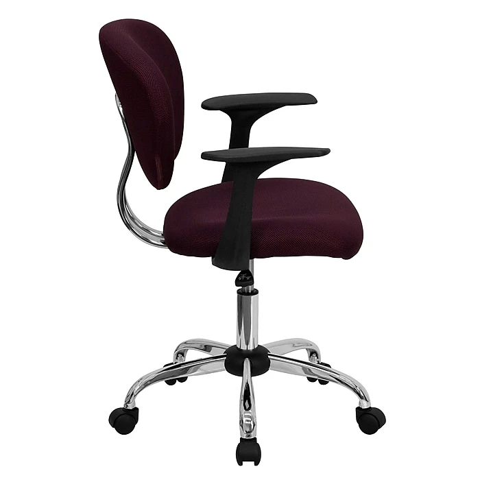 Long working hours are a breeze with the burgundy Flash Furniture Contemporary Task Chair that guarantees comfort and support. Upholstered with high-quality foam, this mid-back task chair adds a fresh look to your workspace. This chair’s base is equipped with caster wheels for easy mobility from one desk to another while working. It is ergonomically designed and is a perfect choice when you work or read long hours. Stylish and functional, this chair blends with both formal and informal setups.