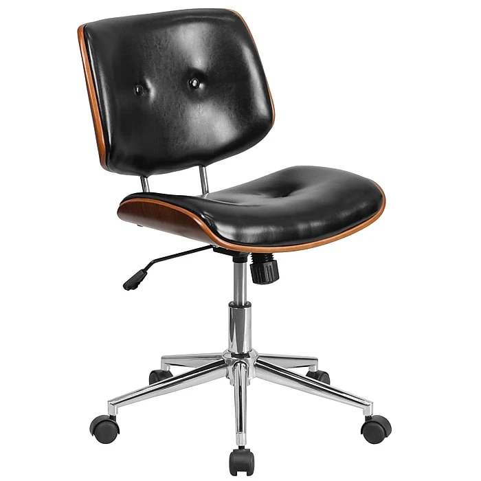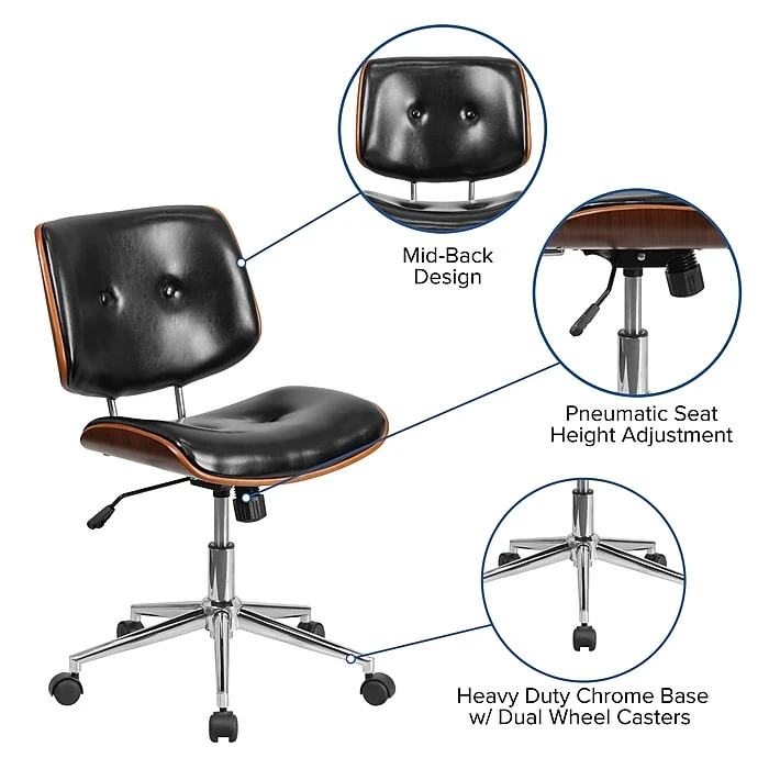 Mid-Back Leather Ergonomic Wood Swivel Task Chair