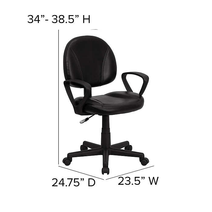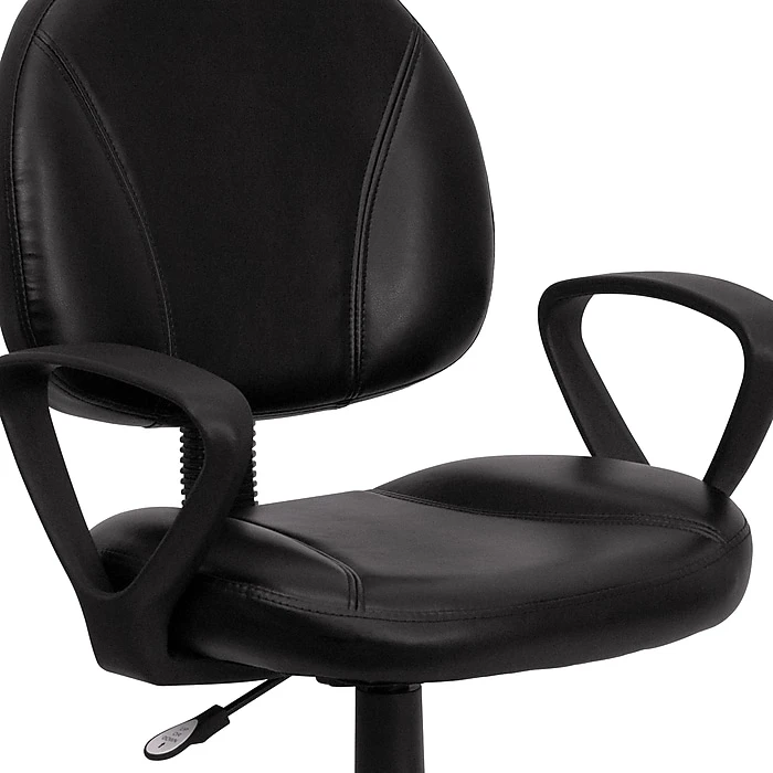 The Flash Furniture Contemporary Task Chair in an elegant black shade is perfect for any setup and looks neat and professional. For extra softness and cushioning, this mid-back task chair has high-quality LeatherSoft upholstery. Its pneumatic seat height adjustment mechanism lets you alter the height to attain a comfortable posture. This black computer chair comes with back tension adjustment knob that allows you to adjust the backrest tension as per your requirement for comfortable seating.