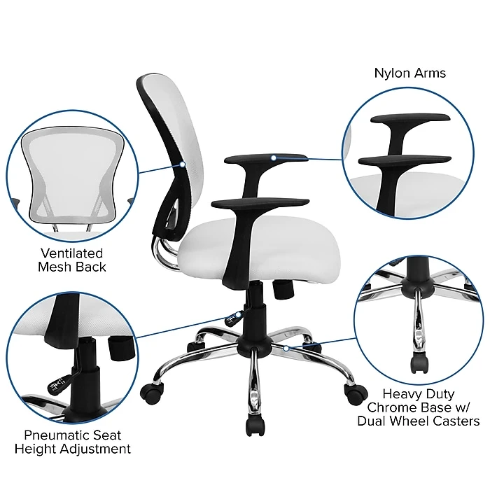 - A metal chrome-finished base stabilizes the Flash Furniture white mid-back executive chair