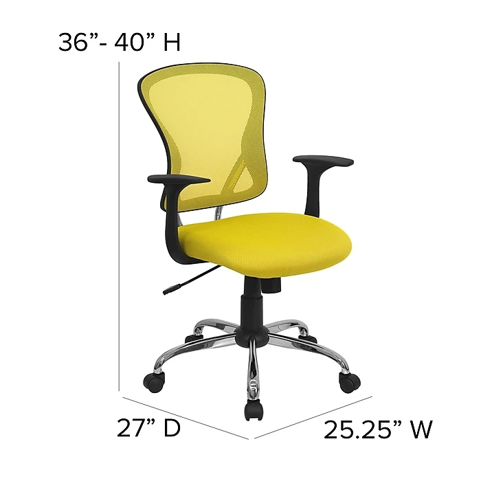 Introduce style and comfort in your workplace with the Flash Furniture Contemporary Executive Chair that is available in an attractive yellow shade. Upholstered with high-quality mesh, this mid-back executive chair adds a fresh look to your workspace. Its pneumatic seat height adjustment mechanism feature lets you regulate the seat height to achieve a good sitting position. You can change the back angle with the help of the tilt mechanism that enables you to recline while reading or working. The chair offers optimum comfort with the lumbar support that fits your spine curve.
