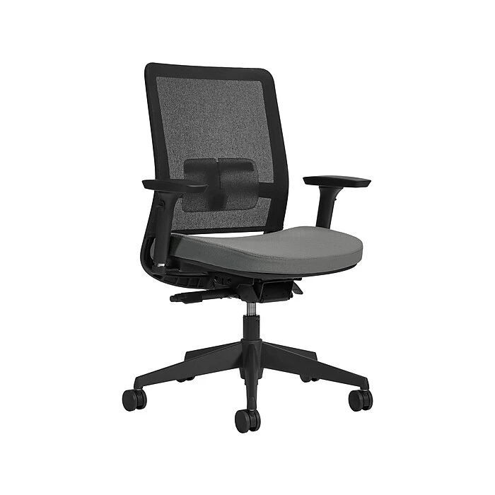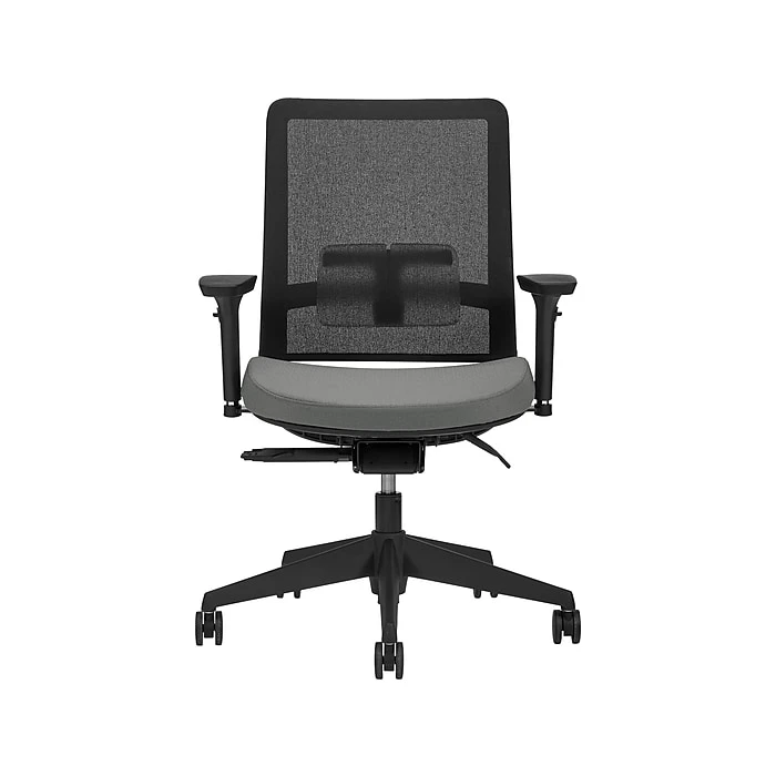 Factor seating recalculates the value equation for work chairs with adjustable lumbar support, weight sensing synchro-tilt mechanism, and adjustable arms. The chair features automatic tilt tension, pneumatic seat height, sliding seat depth, multi-position tilt lock.