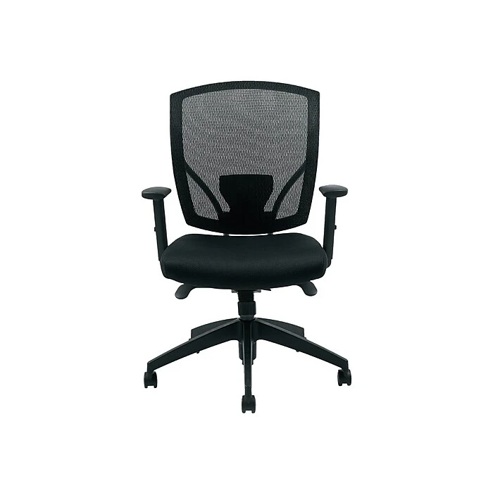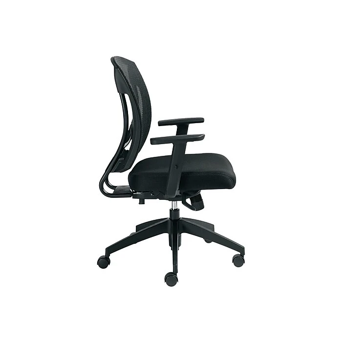 Customize your seating experience with this Offices To Go ergonomic synchro-tilter chair. The multiple-position tilt lock helps you find the perfect angle of recline, while the anti-kick back feature prevents this chair from tipping. Adjust the lumbar support, arms and seat height to fit your frame and desk setup for added comfort throughout the day. With a breathable mesh back and soft upholstery, this task chair keeps you cool and cozy during marathon meetings and conference calls. The durable, scuff-resistant molded base and twin-wheel carpet casters make it easy to roll this Offices To Go ergonomic synchro-tilter chair anywhere in your workspace.