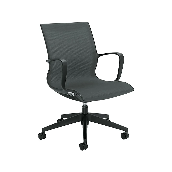 A beautiful, fluid structure and integrated mesh surface come together in this design from Global. This Solar mesh conference chair is a smart addition to a reception area, library, study room, or office. Its waterfall seat design helps reduce leg strain and makes you feel comfortable.
