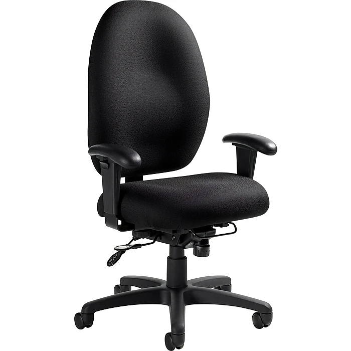 Memory foam padding and adjustable seat, back and arms make the Global Stamina office task chair a good choice in multi-user seating. The waterfall seat-back design and adjustable lumbar support offer all-day comfort. Multi-lever ergonomic controls on t he Global Stamina ergonomic task chair combine with extra weight-bearing capacity to let staff personalize the chair, and it’s designed for 24-hour use by staff working on alternating shifts.
