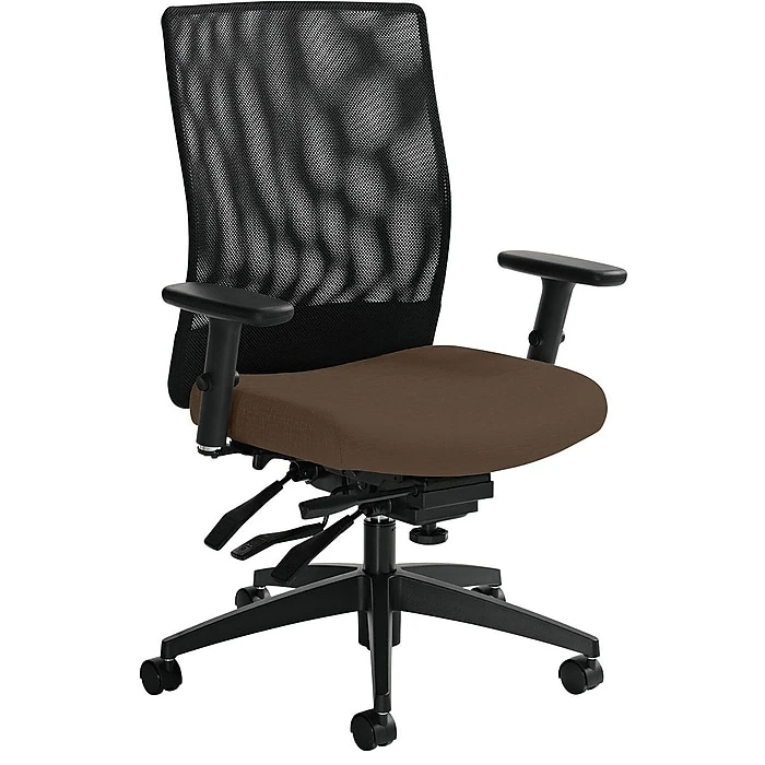 Global Weev Medium back multi-tilter measuring 25″ x 24″ x 39 1/2″ features height and width adjustable arms for optimal user convenience. Urban brown ridge tilter has tension adjustment which allows maximum comfort while decreasing muscle fatigue.