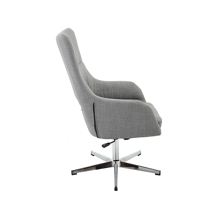 Add a modern flair to your office space with the Hanover Harrison stationary office chair. An extra-wide backrest adds maximum comfort while also giving the user an executive appearance. The modern chrome base stands securely in place while offering a smooth 360-degree spin and effortless seat adjustments. The Harrison design can be used outside the office as well. Its solid neutral tone fabric integrates seamlessly into most color schemes and works as a nice accent chair that will bring modern vibes to any living room, kitchen, or lounge space. Professionalism, comfort, and style come together perfectly with this trendy office chair from Hanover.