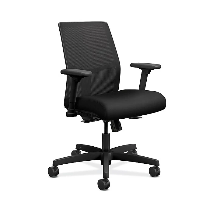 We all want comfort from our office chair. But what about style? Customizable control? Advanced features? You’ve got them all in this Ignition low-back task chair with a ilira-stretch mesh back. The synchro-tilt control mechanism with seat slider reclines the back and seat in the perfect ratio to give you a natural posture, whether sitting upright or leaning back. The breathable ilira-stretch mesh back cradle your spine and increases airflow. Height- and width-adjustable arms provide a custom fit. When you want more control over your comfort, you want an Ignition ilira-stretch mesh back chair. Very easy assembly required. ilira-stretch mesh back, seat fabric and frame colors are Black.