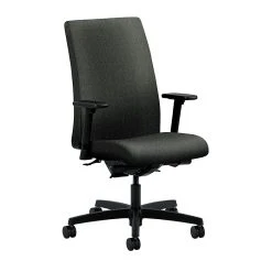 Ignition seating from HON fits your body, your work and your space. This mid-back chair with synchro-tilt and independent back angle offers an exceptional range of motion and is excellent for time-intensive activities. Its high recycled content reduces wood waste. Warranted for users up to 300 lbs. Height- and width-adjustable arms are standard for added comfort. Seat and back upholstery color is Iron Ore, and frame and base color is Black.