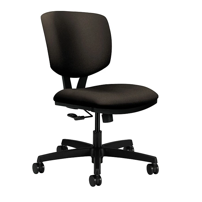 Volt seating from HON offers upscale style, full-scale comfort and impressive quality at a surprisingly affordable price. This low-back chair with center-tilt has generous seat and back cushions that are contoured for comfort while performing active office work. Height-adjustable arms can be ordered separately. Seat and back upholstery color is Espresso.