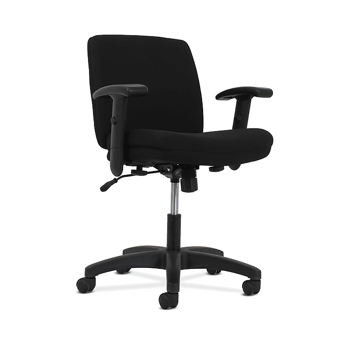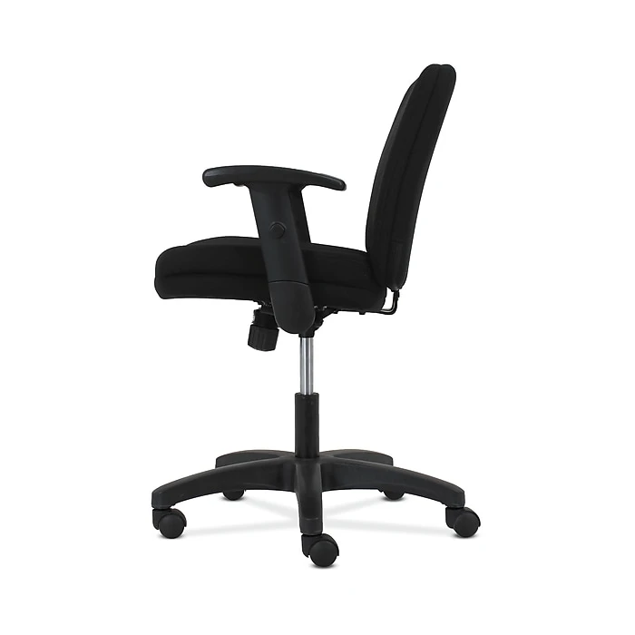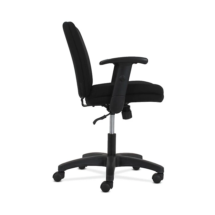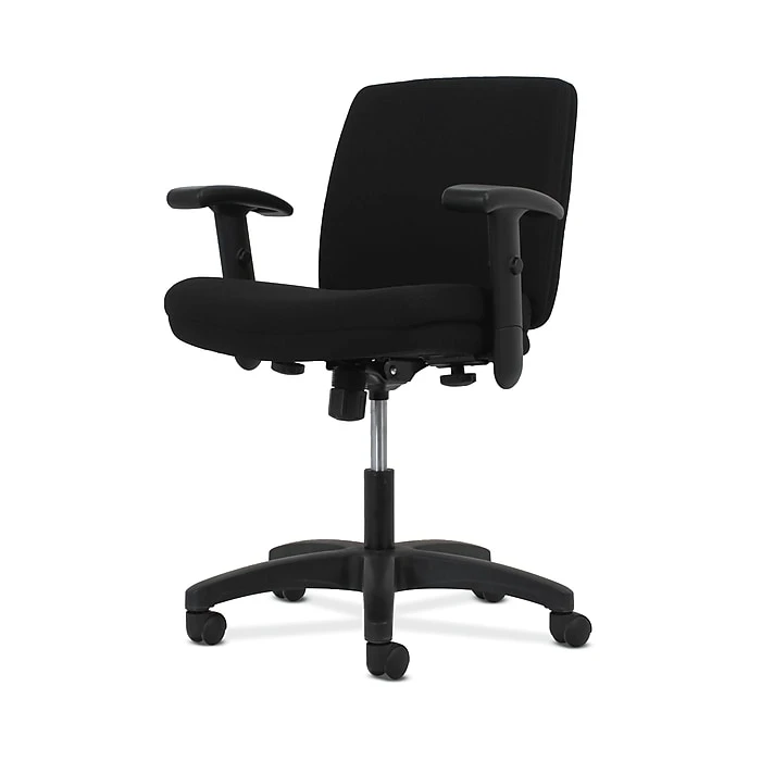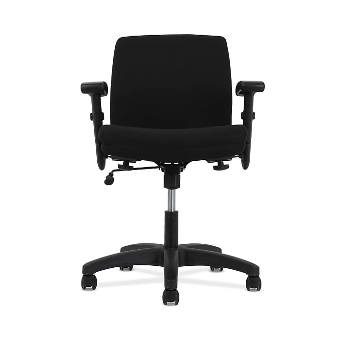 Enjoy classic comfort in a modern chair design with the HON Contemporary series. This low-back task chair features height-adjustable arms and a basic swivel-tilt mechanism to provide comfort and mobility to all users. The padded seat and back deliver ergonomic comfort, and both are covered in Black fabric. The hard casters roll effortlessly on any surface.