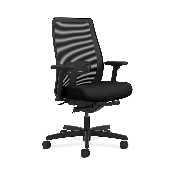 Endorse is The HON Company’s most adaptable seating collection. This mesh, mid-back task chair features adaptable comfort geometry, plus the added benefit of an easy-to-use built-in lumbar adjustment for exceptional lower back support. Synchro-tilt prom otes circulation and spinal alignment, and the standard pneumatic height and seat glide controls accommodate people of varying heights. Adjustable arms help support the forearms and shoulders. The ilira -stretch back material provides natural ventilatio n. Warranted for users up to 300 lbs. Frame and back mesh color is Black and seat upholstery color is Black.