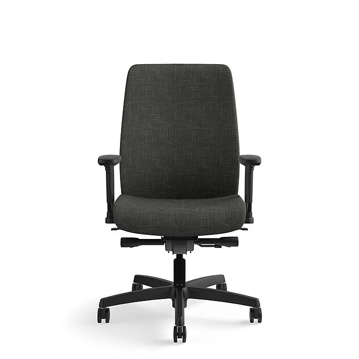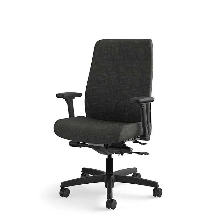 Endorse is The HON Company’s most adaptable seating collection. This mid-back task chair features adaptable comfort geometry, plus the added benefit of an easy-to-use built-in lumbar adjustment for exceptional lower back support. Synchro-tilt promotes circulation and spinal alignment, and the standard pneumatic height and seat glide controls accommodate people of varying heights. Adjustable arms help support the forearms and shoulders. Warranted for users up to 300 lbs. Frame color is Black and upholstery color is Starry Night.