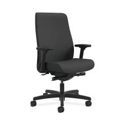 Endorse is The HON Company’s most adaptable seating collection. This mid-back task chair features adaptable comfort geometry, plus the added benefit of an easy-to-use built-in lumbar adjustment for exceptional lower back support. Synchro-tilt promotes c irculation and spinal alignment, and the standard pneumatic height and seat glide controls accommodate people of varying heights. Adjustable arms help support the forearms and shoulders. Warranted for users up to 300 lbs. Frame color is Black and uphols tery color is Iron Ore.