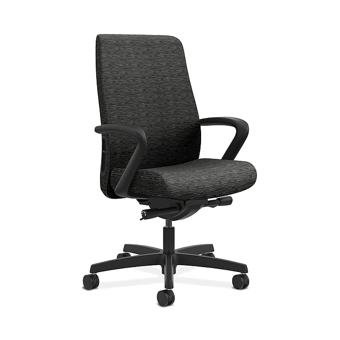 Endorse is The HON Company’s most adaptable seating collection. This mid-back task chair features adaptable comfort geometry, plus the added benefit of an easy-to-use built-in lumbar adjustment for exceptional lower back support. Synchro-tilt promotes c irculation and spinal alignment, and the standard pneumatic height and seat glide controls accommodate people of varying heights. Fixed arms help support the forearms and shoulders. Warranted for users up to 300 lbs. Frame color is Black and upholstery color is Onyx.