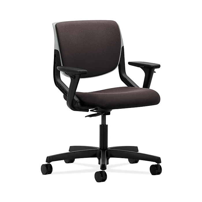 HON Motivate seating transforms any space into a dynamic environment. This task chair incorporates both great style and good ergonomics. The flex-back motion helps support the spine. Shell color is Platinum, back and seat upholstery color is Espresso, a nd base is Black.