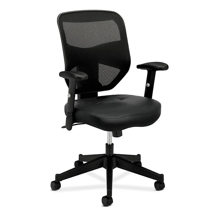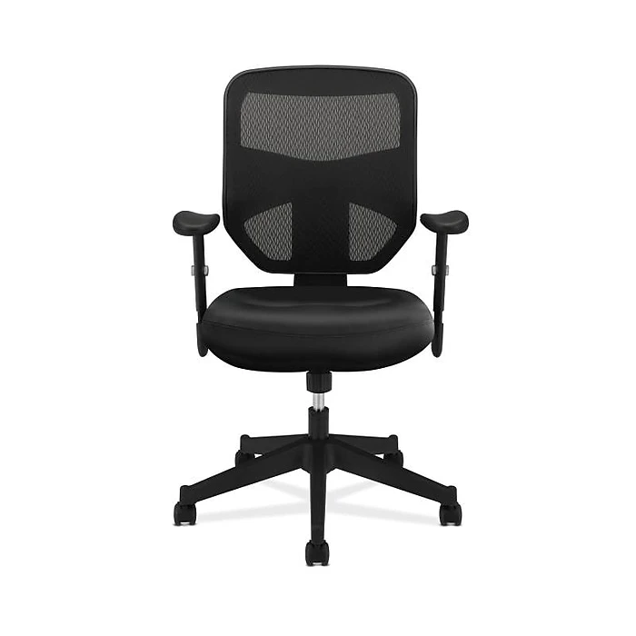A waveform seat and height-adjustable padded arms give this chair an upscale feel at a compelling price. Seat upholstery is Black SofThread leather mesh. Back mesh, frame and base color is Black.