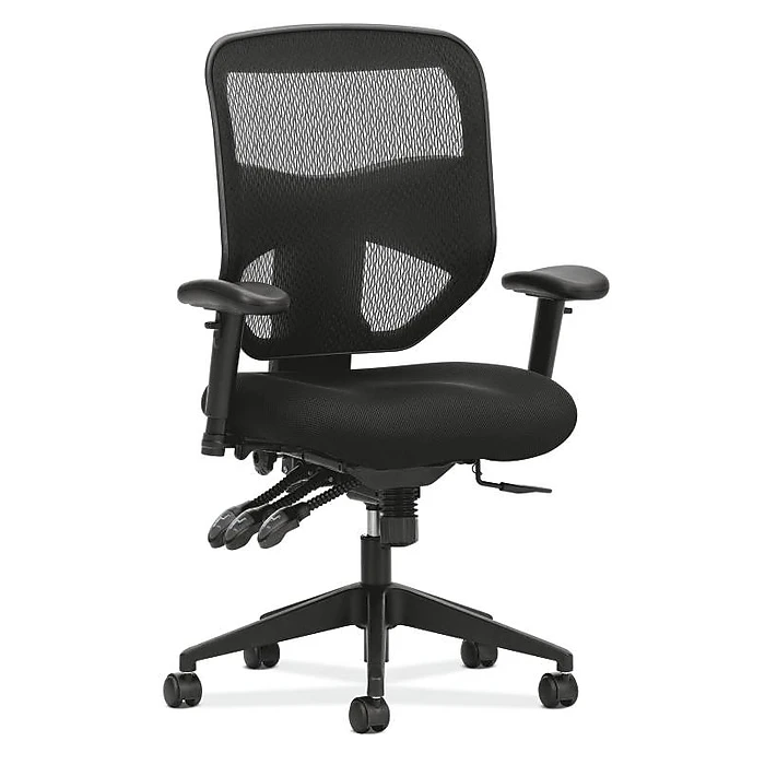 - Deeply contoured seat and back and adjustable arms provide outstanding all-day support for task work