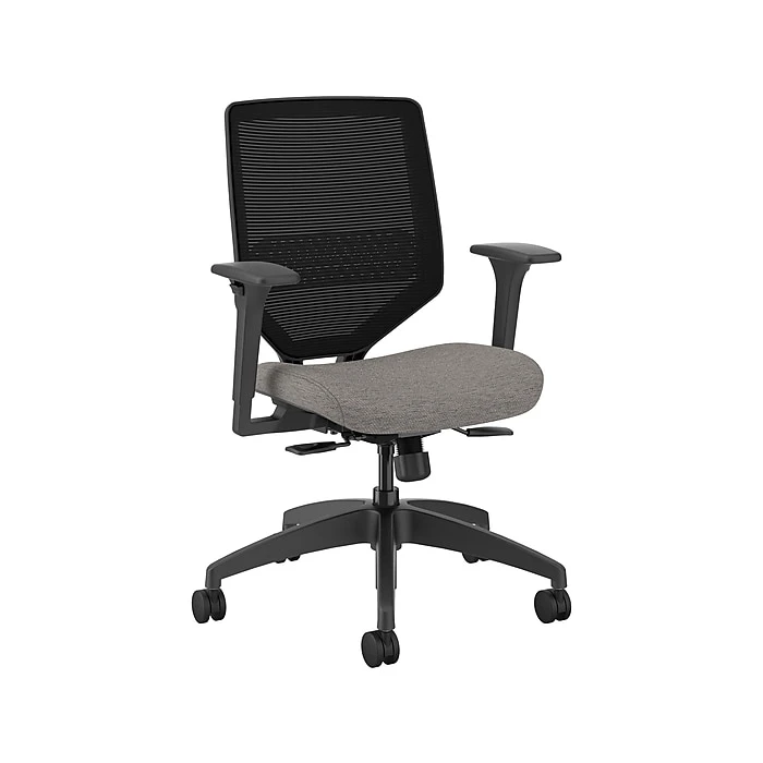 HON Solve is a seating solution that helps a variety of users achieve optimal comfort. This Solve mid-back task chair features a responsive four-way stretch mesh back to provide all-day comfort and support. The synchronized seat and back provide proper balance, alignment and lumbar support, and can be adjusted with a single lever.