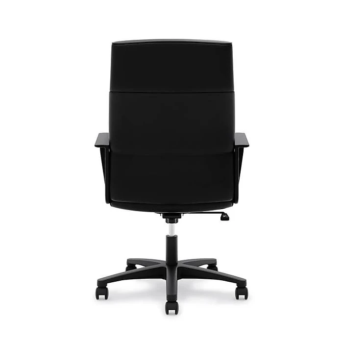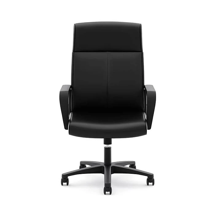 The articulated back cushions and contemporary tapered loop arms add to the modern appeal. The integral headrest provides support and comfort. Convenient center-tilt control features adjustable tension and upright lock to provide choices in posture. Upholstery is Black SofThread leather; base and arms are Black.