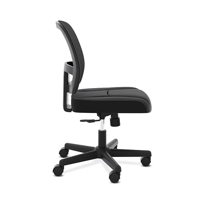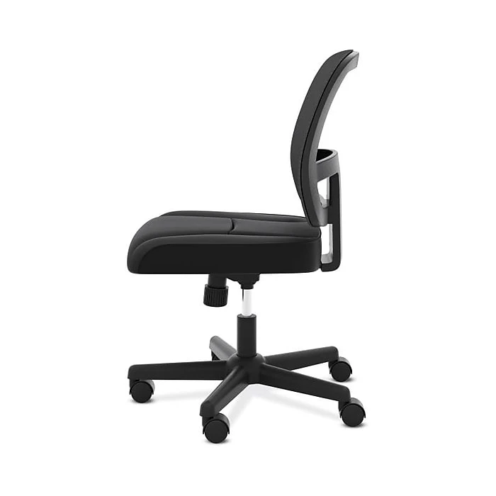 The upscale look is accompanied by a luxurious feel, created by the thickly cushioned seat with waterfall edge design to enhance circulation. It features center-tilt with lock and tension control for customizable comfort. This task chair offers the comfort and style of mesh at an attainable price. Seat upholstery color is Black and back mesh color is Black.