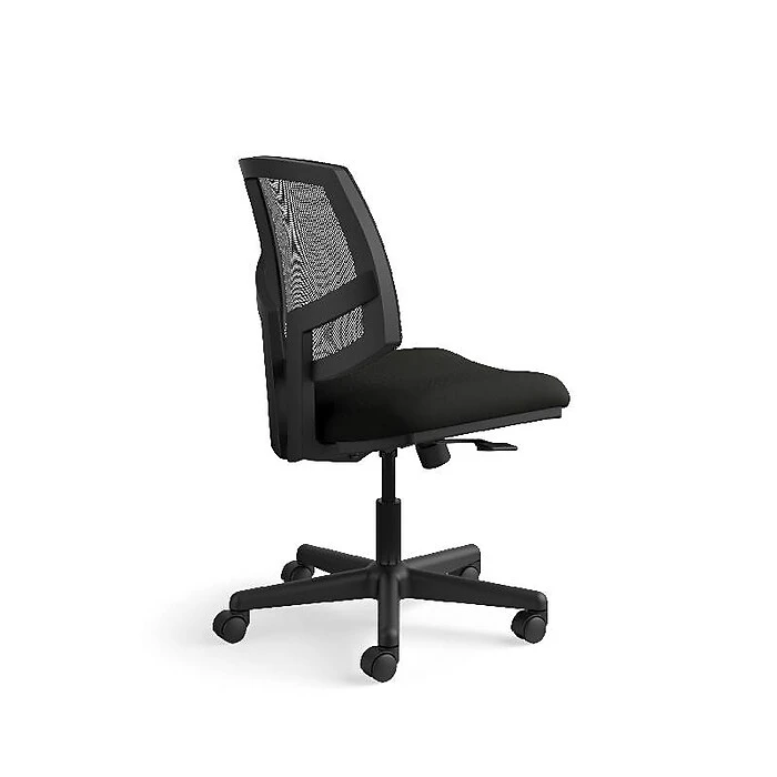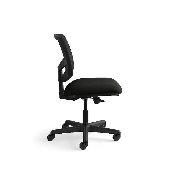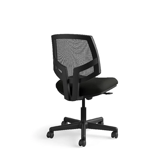 Manage business in comfort with this simple HON Volt mesh-back task chair. The tilt tension and tilt lock deliver controlled reclining, while the synchro-tilt mechanism reclines the back at a higher ratio than the seat for proper back alignment. Crafted with a breathable mesh, the back permits airflow to keep you cool throughout the busy day. The pneumatic seat-height mechanism allows easy movement to your preferred work level, while the 360-degree swivel lets you rotate quickly from task to task. Optional adjustable arms can be added to this chair for additional upper body support. This HON Volt mesh-back task chair has a wide stable base with five casters for safe, swift movement around the office.