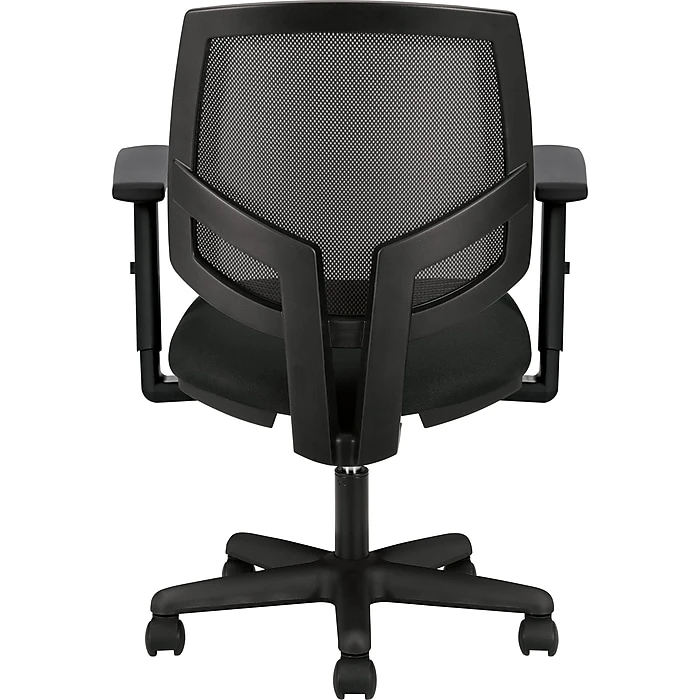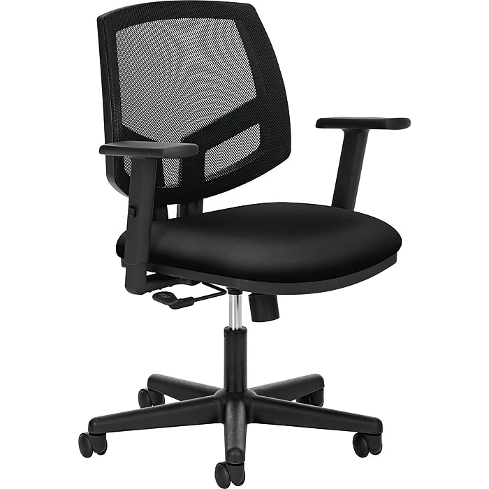 Volt seating from HON offers upscale style, full-scale comfort and impressive quality at a surprisingly affordable price. This mesh back chair with center-tilt has a generous seat cushion and a cooling mesh back for ventilation while performing active office work. Height-adjustable arms are included. Seat upholstery color is Black.