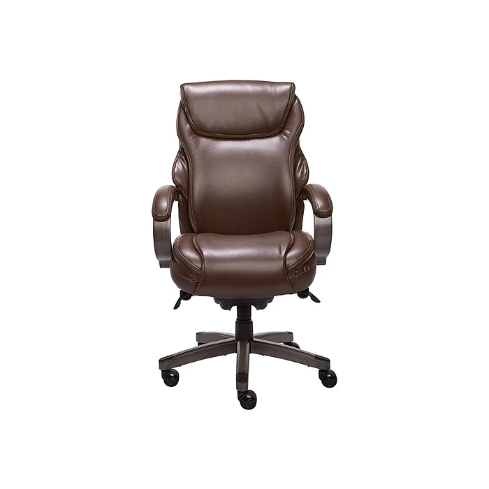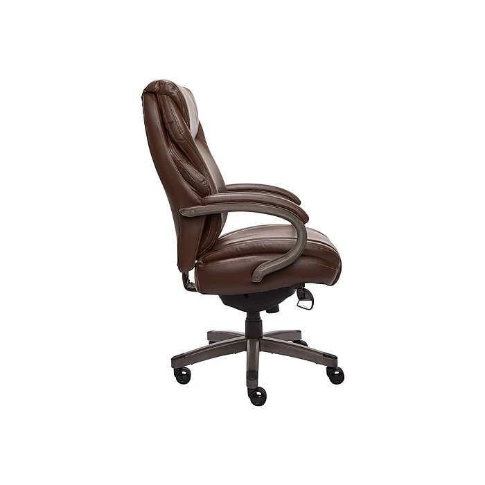 With high-end soft bonded leather upholstery and elegant wood detailing, the La-Z-Boy Hyland executive office chair with AIR technology is a statement chair for any traditional office space. The flexible AIR lumbar system pivots to provide back support whenever you shift. The adjustable height, recline, and layered memory foam cushions will keep you cradled in comfort all day. The La-Z-Boy Hyland executive office chair is a luxurious addition to any workspace.