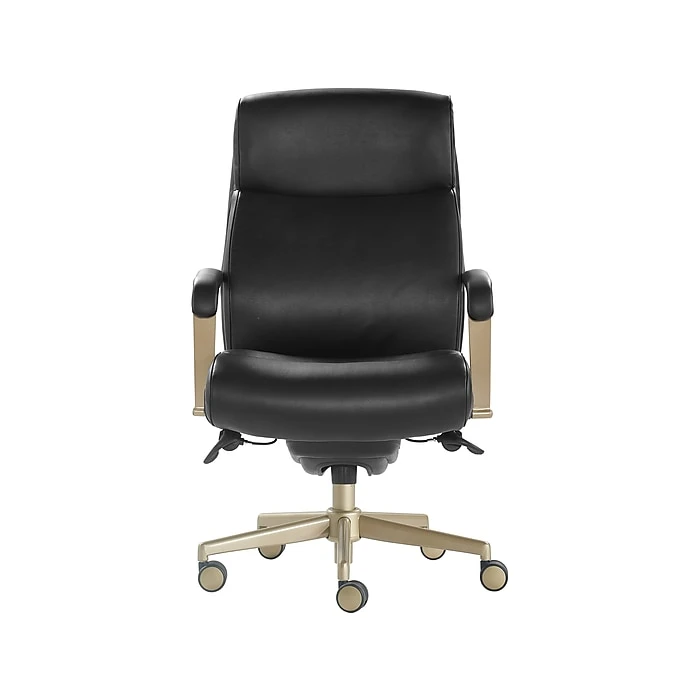 Fitting with your modern lifestyle, the Melrose executive office chair showcases clean lines, contemporary color, and overall sensibility. Smooth bonded leather offers sleek seating while maintaining a high-end look. Set on a copper-finished wheeled base, this office chair moves with ease from a day of work at your desk, to your living room for a night of gaming. The ergonomic design, full cushion foam, and adjustable lumbar support keep you comfortable and energized through every moment. Ergonomic and adjustable, this La-Z-Boy office chair allows you to control the height and tilt to suit your sit positioning and give you an optimized body alignment. La-Z-Boy office chairs are designed to put your comfort first with quality that’s built to last, so your work day is always engaged and productive.
