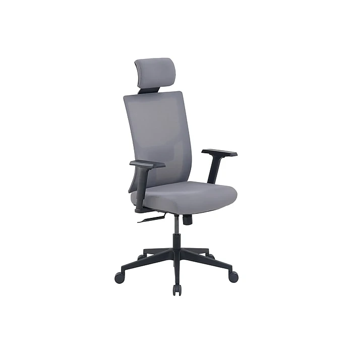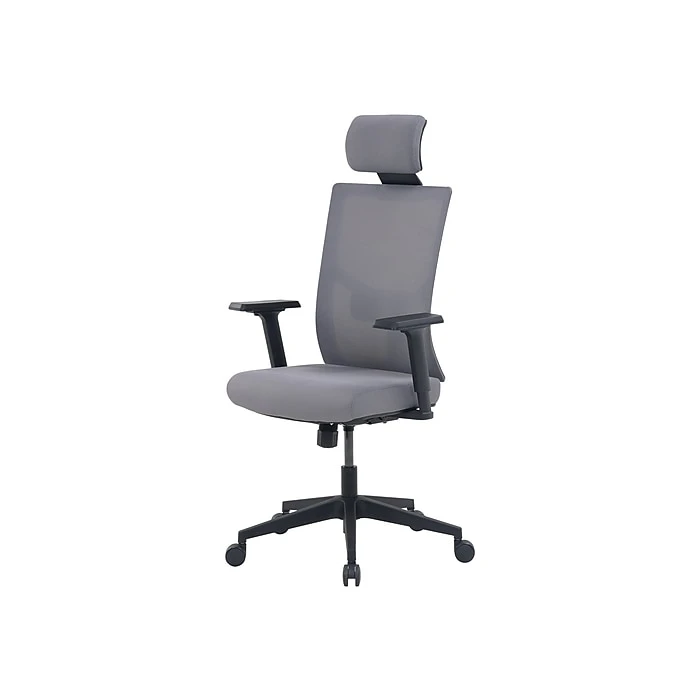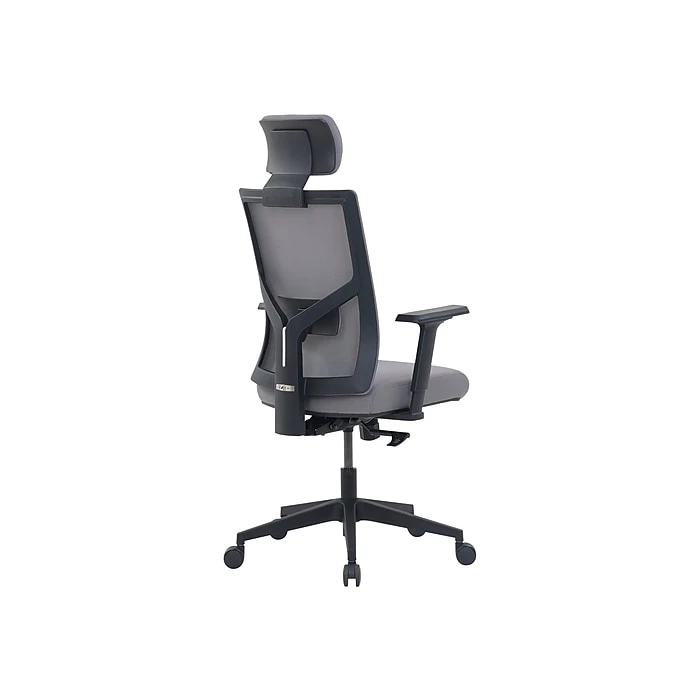 - Gray molded foam upholstery and mesh back are easy to maintain