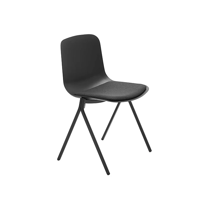 This Poppin The Seating-On-Lock chair is lightweight, elegantly designed, and easy to clean, making it perfect for both remote work and shared spaces at work. The durable molded plastic seat, permanently affixed seat pad, and steel frame look at home in any office.