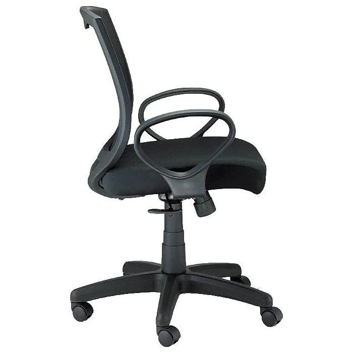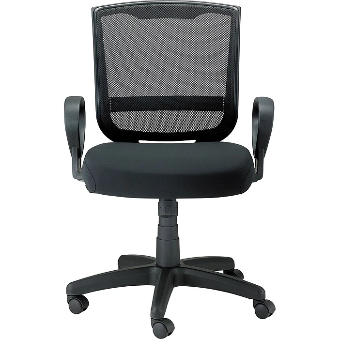 - Black mesh back and fabric upholstered seat for comfort, durability and a stylish look