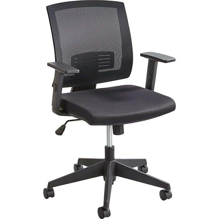 Safco® Mezzo™ Task Chair, Mesh Back with Upholstered Seat, Black, Seat: 18″W X 18″D, Back: 17 1/2″W x 18 1/2″H