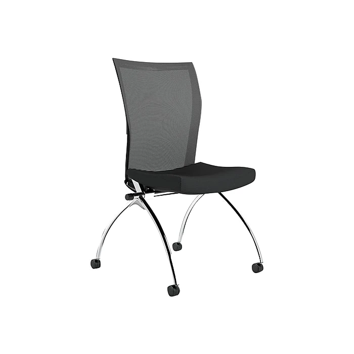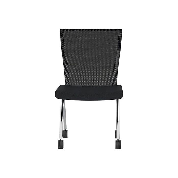 If you want a comfortable, exceptionally stylish chair for use in training or teaming spaces, you want Valoré training chair by Safco. Lightweight nesting chair is available in a high-back design. Seats flip up to allow for compact nesting storage to help save space when not in use. High-back design features a gentle recline for optimal comfort. Mobile on dual-hooded casters for easy reconfiguration of space as needed. A comfortable seat is available in standard black fabric with chrome base. The back comes in breathable mesh in black color.