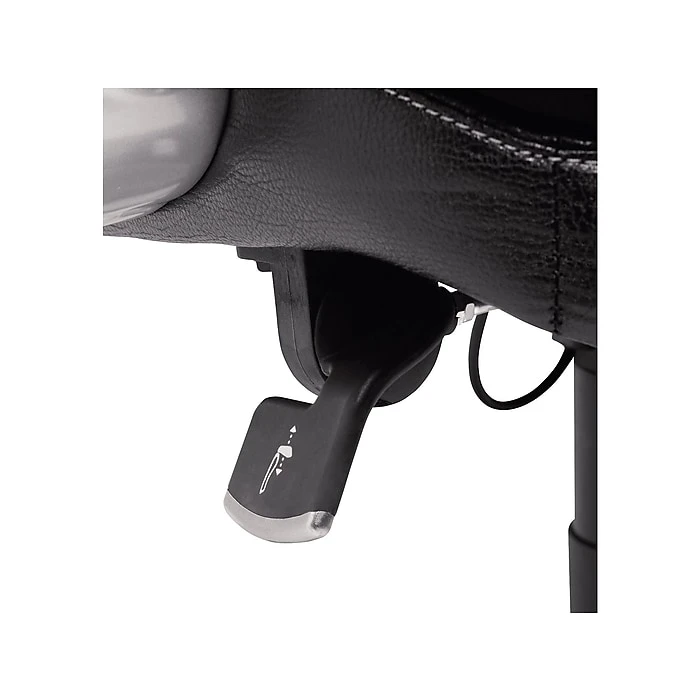 - Smooth black bonded-leather cushioned seat is easy to clean with a damp cloth
